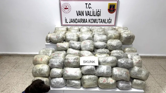 Başkale ilçesinde jandarmanın hudut bölgesinde düzenlediği operasyonda, araziye gizlenmiş 70 kilo skunk bulundu.